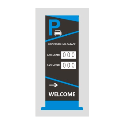 Экран навигации | Отображает приветственные сообщения и информацию об оставшемся месте на этаже всей парковки | Пиксельный состав модуля: 1R1G Двухцветный | Количество модулей: 2 | Интерфейс: Ethernet 1×RJ45 10M/100Mbps / 1×RS485 / 1×RS232 | Расстояние связи: 1200м (последоват. порт) / 120м (сетевой кабель) | Цвет: Черный/Синий | Питание: АC 110-220V | Размер: 150×700×2000мм / 320×160мм (модуль)