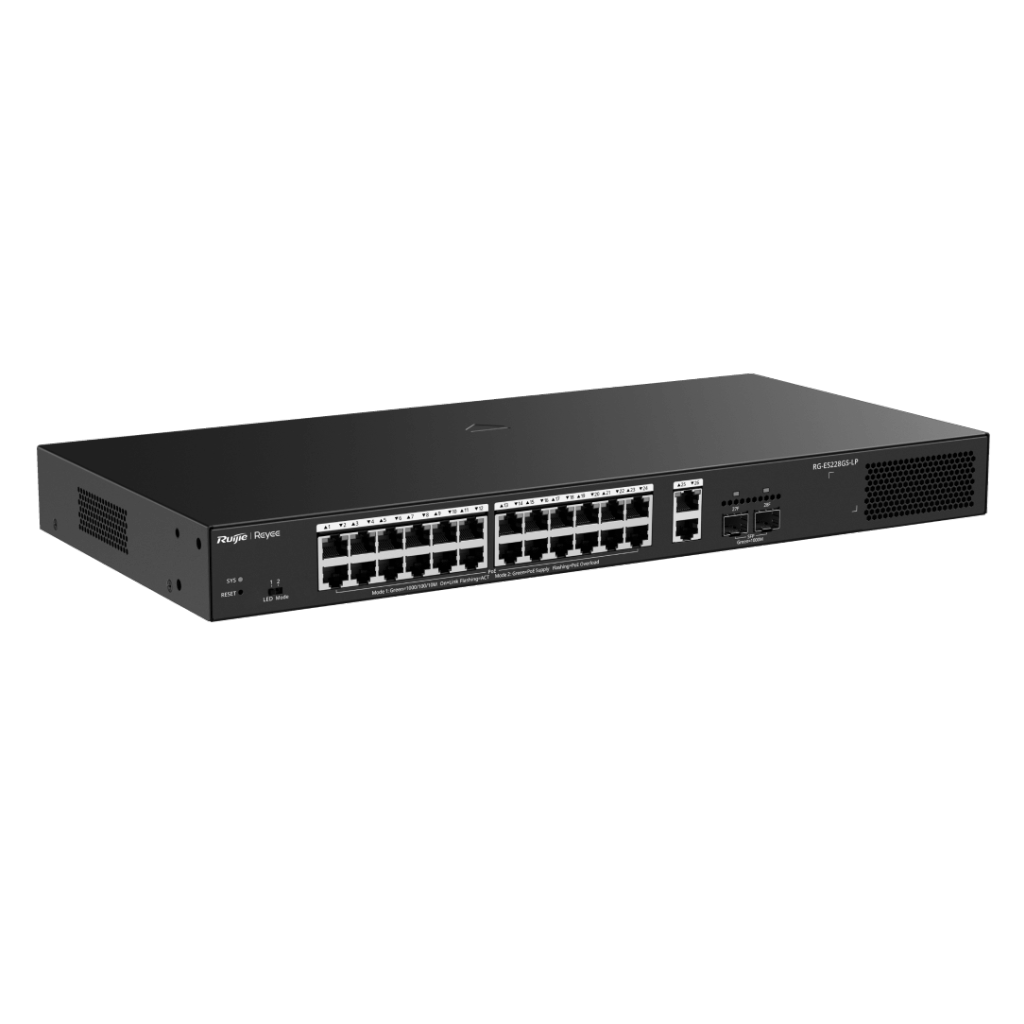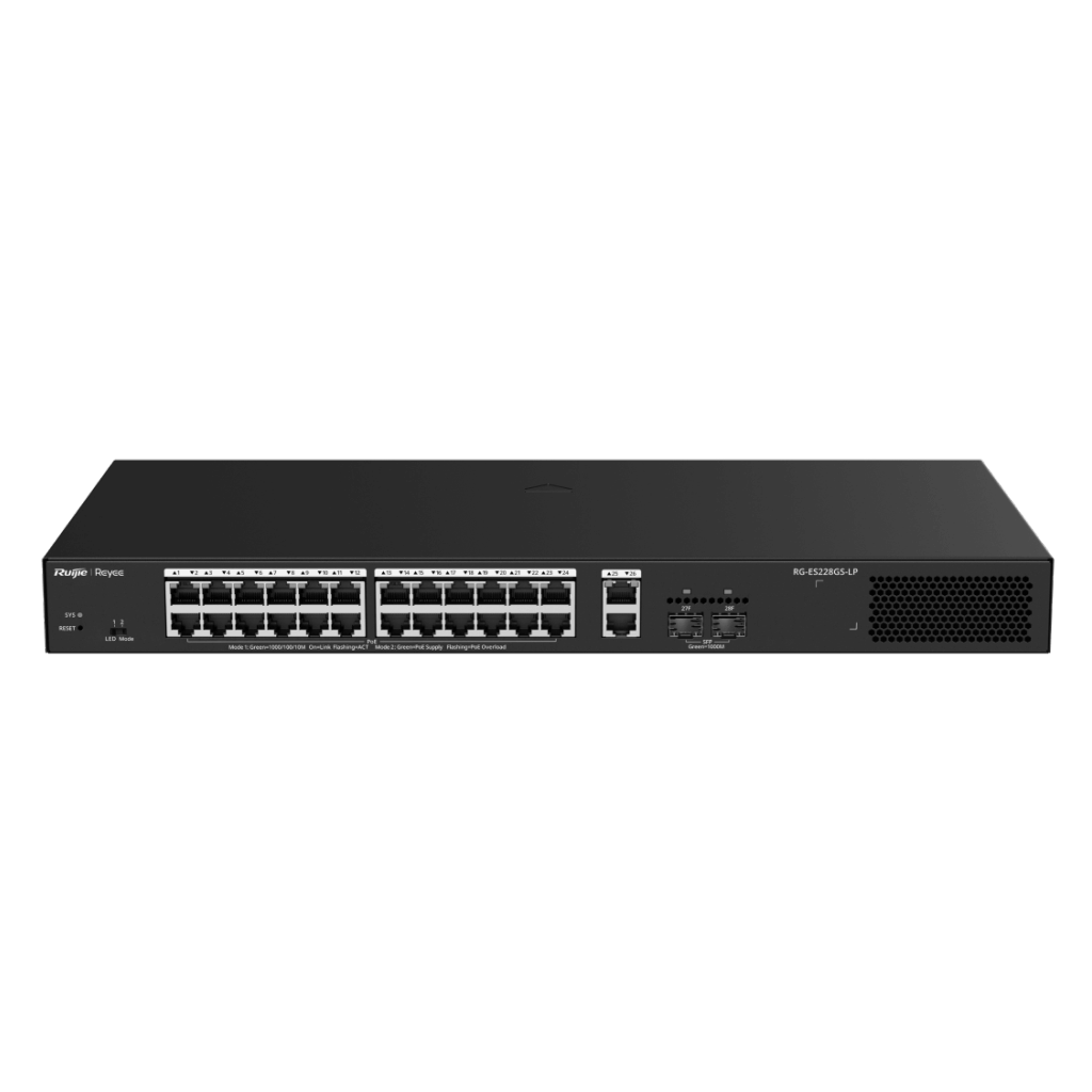 PoE Коммутатор | Уровень: Управляемый | Интерфейс: PoE 24×RJ45 1Гбит/с / Uplink 2×RJ45 1Гбит/с / Uplink 2×SFP 1Гбит/с | Протоколы: VLAN, DHCP, EEE, HTTP, Loop prevention, Flow control, Port isolation, Broadcast storm suppression, Cloud management | PoE Стандарт: IEEE 802.3af/at | PoE Бюджет: 250W | Скорость коммутации: 56Гбит/с | Скорость передачи пакетов: 41.66Мбит/с | Облачное управление: Ruijie Cloud / PoE Watchdog | Reset Кнопка сброса настроек | MTBF: >200'000 часов | Охлаждение: Активное | Типоразмер: Настольный / 1U | Материал: Металл | Степень защиты: ESP TVS 6000V Защита от перенапряжения до 6kV | Питание: AC 100V~240V 6A | Температура: 0°C...+40°C | Вес: 2.8кг | Размер: 440×215×43.2мм