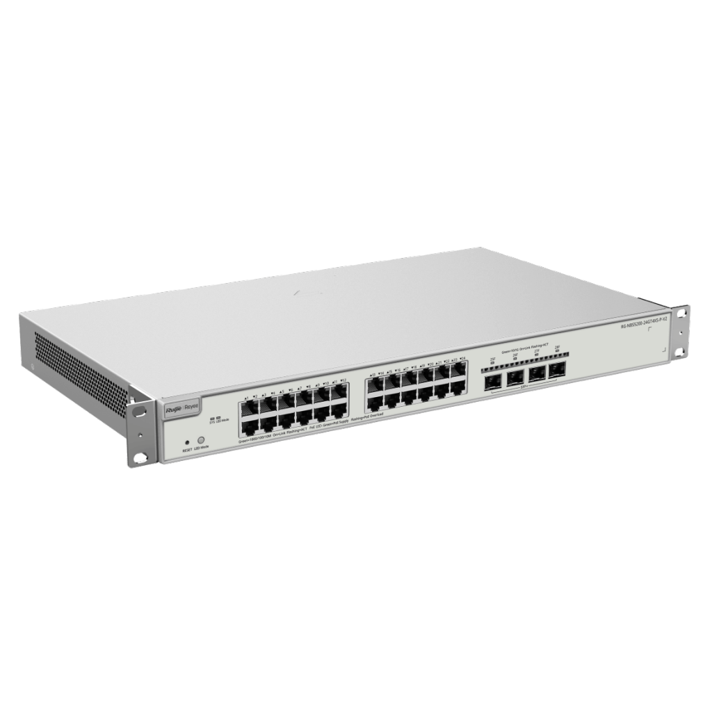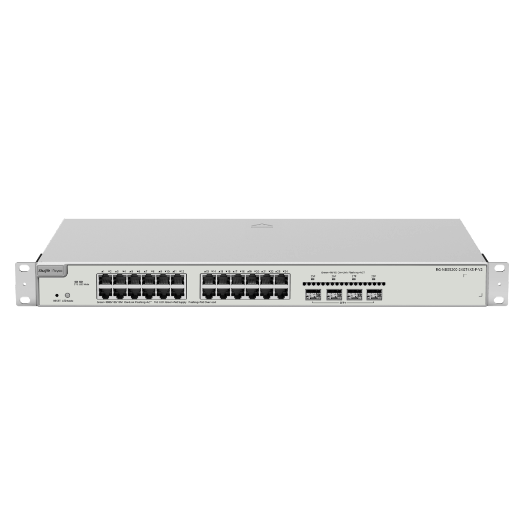 PoE Коммутатор | Уровень: L3 Управляемый | Интерфейс: PoE 24×RJ45 1Гбит/с / Uplink 4×SFP+ 10Гбит/с | Протоколы: DHCP, STP/RSTP, Voice VLAN, IGMP Snooping v1/v2/v3, CPP, EEE, PoE Watchdog | PoE Стандарт: IEEE 802.3af/at | PoE Бюджет: 370W | Скорость коммутации: 216Гбит/с | Скорость передачи пакетов: 132Мбит/с | MTU Кадр сети Ethernet: 9216Байт | LAG Агрегация каналов: 16 групп | ACL Список управлением доступом: 1900 правил | Облачное управление: Ruijie Cloud | Автоматическое аварийное восстановление устройства | MTBF: >400'000 часов | Охлаждение: Активное | Типоразмер: Настольный | Материал: Металл | Степень защиты: ESP TVS 6000V Защита от перенапряжения до 6kV | Питание: AC 100V~240V 6A 431.86W | Температура: 0°C...+50°C | Вес: 4.5кг | Размер: 440×357.6×43.6мм