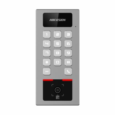 Вызывная панель домофона с функцией контроля доступа | Функции: Вызывная панель домофона / Контроль доступа / Считыватель бесконтактных карт доступа / Кодонаборная клавиатура / Несколько режимов аутентификации / Разблокировка пропускного пункта | СКУД: Считыватель бесконтактных карт 1×Mifare 13.56Mhz (DESfire) / Код доступа / QR-Код | Интерфейс: Ethernet 1×RJ45 10M/100Mbps / 1×Wi-Fi 2.4GHz IEEE802.11b/g/n / 1×Bluetooth / Аудио 1×Микрофон/1×Динамик / Сигнальный 2×Вход/1×Выход / Реле 2×Выход / 1×Wiegand 26/34 / 1×RS485 / 1×Кнопка доступа / 1×Датчик двери / 1×Тампер датчик вскрытия и демонтажа устройства / 1×MicroSD Карта памяти до 256Gb / Блок управления 1×Контроллер | Время считывания карт и меток: <1сек/карта / Эффективная дистанция: 0-3см. | Облачный сервис: HIK-Connect | Доступ и управление с мобильных устройств: HIK-Connect | Управление: HIK-Connect / Клавиатура с кодонаборником / Mifare Считыватель бесконтактных карт и меток | Инсталляция: Накладной монтаж | Цвет: Серый | Применение: Наружное | Материал: Цинковый сплав | Степень защиты: IP65/IK09 | Питание: DC 12~24V 1A 24W / PoE IEEE 802.3at | Температура: -40°C...+65°C | Размер: 177×81×25.1мм