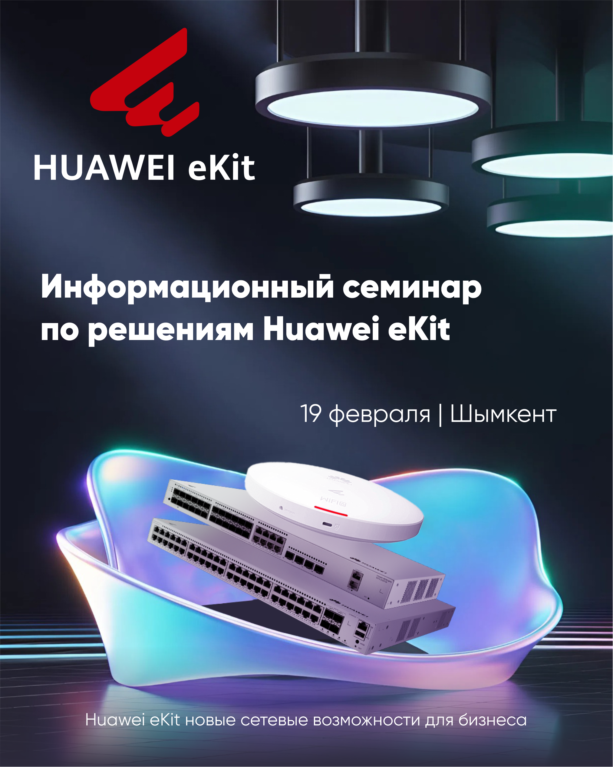 19 февраля в Шымкенте пройдёт наш первый информационный семинар по оборудованию Huawei eKit, где расскажем и покажем современные сетевые и ИКТ-решения.